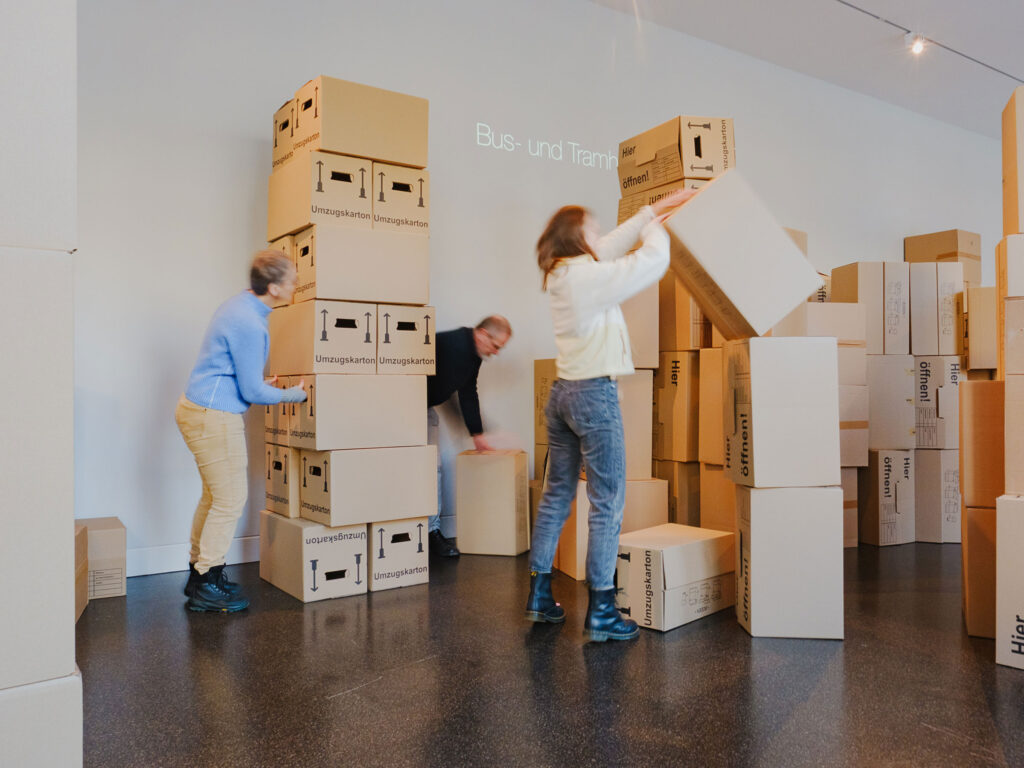 As sort of discursive book-ends to these layered, concurrently unfolding projects, we invited Florian Malzacher to curate and host two editions of his nomadic in-conversation series The Art of Assembly. The first, at Contact in Manchester, brought together Jenna Ashton, Linda Brogan and Alistair Hudson; the second, on the final day of our time at Museum Gunzenhauser, was with Sajad Habibi, Darren O’Donnell and Cecile Sandten. As visitors made imaginary cities with cardboard boxes in the space next door, these artists, academics and cultural workers probed through conversation the question: what makes a city?
